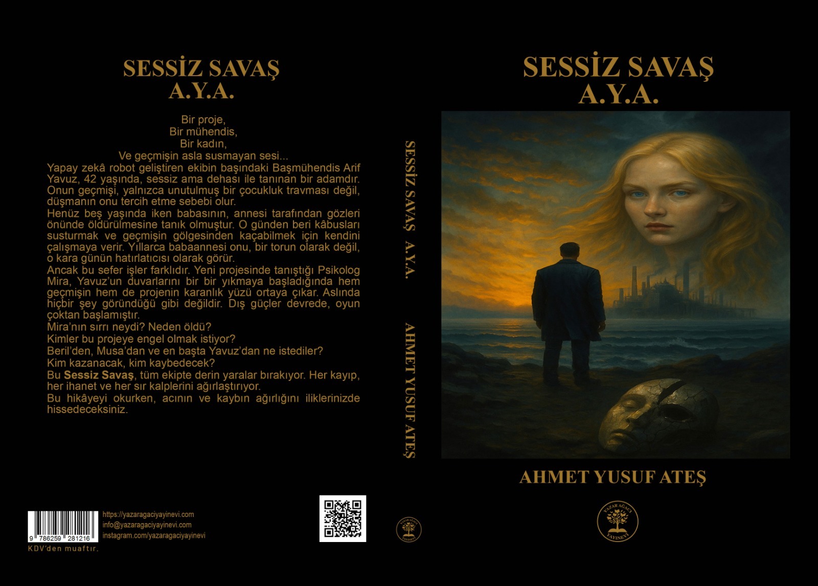 SESSİZ SAVAŞ A.Y.A.Bazı savaşlar silahlarla verilmez. Sessizdir. Kimse görmez. Ve çoğu zaman en çok iz bırakanlar da onlar olur. Bir proje, Bir mühendis, Bir kadın, ve geçmişin asla susmayan sesi…Yapay zekâ robot geliştiren ekibin başındaki Başmühendis Arif Yavuz, 42 yaşında sessiz ama dehası ile tanınan bir adamdır. Fakat onun geçmişi yalnızca unutulmuş bir çocukluk tramvası değil, düşmanın onu tercih etme sebebi olur.Henüz beş yaşında iken babasının annesi tarafından gözleri önünde öldürülmesine tanık olmuştur. O günden beri kabusları susturmak ve geçmişin gölgesinden kaçabilmek için kendini çalışmaya verir. Yıllarca babaannesi onu, bir torun olarak değil de, o kara günün hatırlatıcısı olarak görür.Ancak bu sefer işler farklıdır. Yeni projesinde tanıştığı Psikolog Mira, Yavuz’un duvarlarını bir bir yıkmaya başladığında, hem geçmişin hem de projenin karanlık yüzü ortaya çıkar. Aslında hiçbir şey göründüğü gibi değildir. Dış güçler devrede,oyun çoktan başlamıştı.Kaza süsü verilen sabotajlar, iftiralar ve akıl oyunları…Her şey , birilerinin bu projeyi durdurmak için gölgelerden emir aldığına işaret ediyor ama kimse farkedemiyor. Arif Yavuz hem kendi karanlığıyla hem de etrafına örülen görünmez bir ağ ile mücadele etmek zorundadır.Mira’nın sırrı neydi ? Neden öldü?Kimler bu projeye engel olmak istiyor ? Beril’den, Musa’dan ve en başta Yavuz’dan ne istediler? Kim kazanacak, kim kaybedecek?Bu Sessiz Savaş tüm ekipte derin yaralar bırakıyor.Her kayıp, her ihanet ve her sır, kalplerini ağırlaştırıyor.Sessiz Savaş A.Y.A. kayıpların insanları nasıl şekillendirdiğini, sessiz insanların içinde biriken fırtınayı, gölgelere saklanmış bir düşmanla verilen mücadelenin ne kadar zor ve acımasız olacağını gözler önüne seriyor.